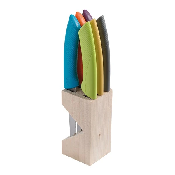 Les 6 couteaux à steak Golf avec leur bloc en bois Pradel sont parfait pour déguster des plats au quotidien. Ils sont conçus avec une lame en inox micro-dentée pour une découpe optimale de vos aliments. Les manches sont en polypropylène, dans de jolies couleurs trendy mix qui égayeront vos tables !
