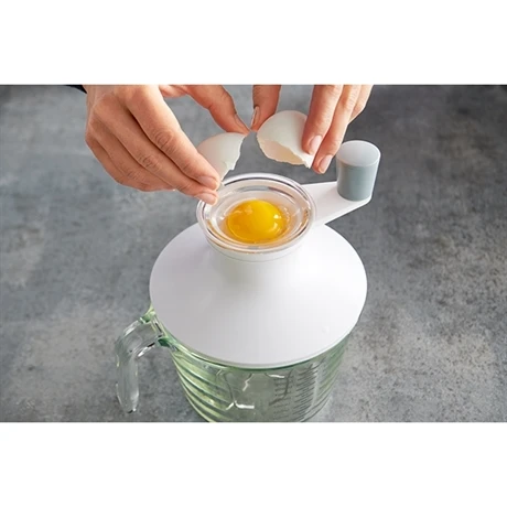 Pour des recettes effectuées avec un seul outil, un séparateur de jaune et blanc d’œufs est inclus avec ce batteur magique en verre Betty Bossi ainsi qu’un entonnoir qui s’intègrent tous deux directement dans le couvercle afin de verser les ingrédients par un trou situé au milieu. Ce système offre une plus grande homogénéité à vos recettes puisque vous pourrez continuer à tourner tout en versant les ingrédients, sans éclaboussures puisque le récipient reste fermé. Après utilisation, tout le matériel passe directement au lave-vaisselle : un ustensile pratique, écologique et très performant à petit prix.