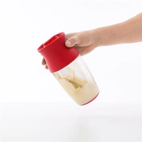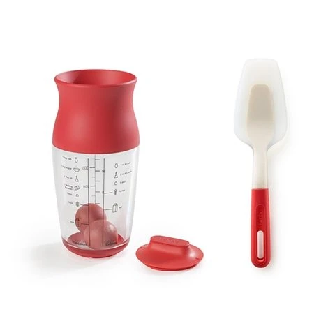 Les ustensiles passent au lave vaisselle et le shaker peut être stocké au réfrigérateur pour conserver la pâte.