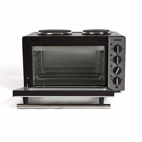 Le mini four d’une capacité de 30 L est doté de 2 plaques électriques pour vous permettre d’optimiser vos espaces tout en profitant de la cuisson au four et à la poêle ! Complet, ce four dispose de 5 modes de cuisson ainsi que de la cuisson à chaleur tournante pour réussir à coup sûr toutes sortes de préparations. Adaptable, ce four dispose de 2 plaques de cuisson indépendantes ainsi que de témoins lumineux de fonctionnement et thermostat réglable jusqu’à 230°C.