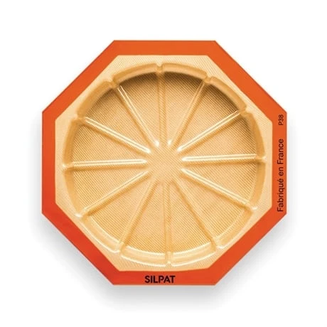 En toile de verre souple revêtue de silicone anti-adhérent, ce moule 12 portions Silpat assure des cuissons homogènes, et des préparations toujours moelleuses. Les démoulages sont faciles et les présentations impeccables.