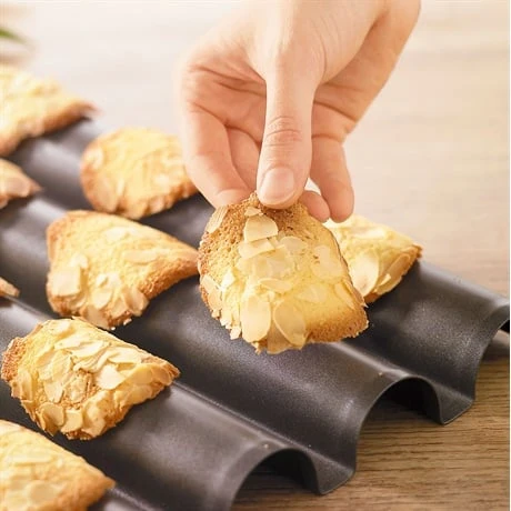 La plaque à tuiles antiadhésive de la gamme Mathon Spécialités en acier vous permet de confectionner très simplement des tuiles croustillantes et bien bombées. Le revêtement antiadhésif assure un démoulage et un nettoyage faciles car la pâte n’attache pas. De grandes dimensions, elle s’adapte à la taille de votre four et permet de réaliser des tuiles en grandes quantités. Son revêtement anti-adhérent de haute qualité contient de nombreuses particules de céramique pour une anti-adhérence exceptionnelle et une forte résistance aux rayures chocs et températures extrêmes.