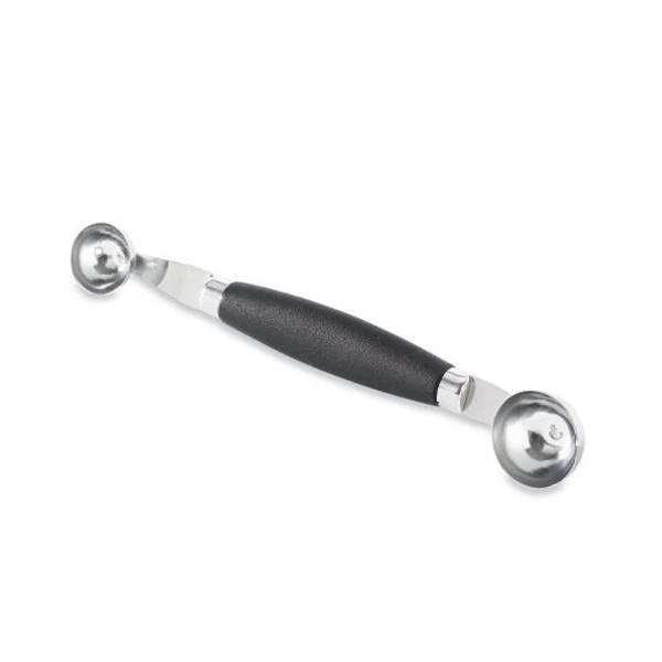La cuillère parisienne double vous permet de former de petites billes de fruits et légumes pour décorer vos salades, plats et entrées. De qualité professionnelle, la cuillère parisienne double est en inox et aluminium, et son manche en polypropylène.