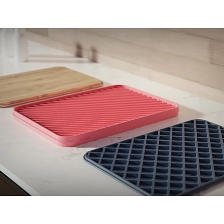 Le set de 3 planches à découper, égouttoir et dessous de table appelé Trilogy compile 3 objets revisités pour habiller votre cuisine avec soin. Empilables, ils peuvent être rangés facilement et vous offrent une palette variée qui s’accorde finement. Commencez par utiliser la planche à découper, qui est taillée dans du bois de bambou pour résister à l’usure et économiser la lame de vos couteaux, et dispose d’un dessous antiadhérent pour une découpe stable sécurisée. Une fois vos aliments découpés et vos plats mijotés, déposez votre marmite, casserole ou plat de service sur le dessous de plat en silicone thermorésistant pour décorer votre table. Et après le repas, lorsque le nettoyage sera de mise, vous pourrez égoutter votre vaisselle sans inonder votre plan de travail grâce au large égouttoir en silicone qui évitera de rayer vos couteaux, assiettes et verres.