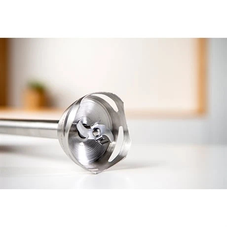 Muni de la technologie de dernière génération Turbo Rotation System, les lames en acier inoxydable à haut rendement du pied sont à double effet, hachant sans engendrer d’éclaboussures. Elles soulèvent les aliments, les hachent et les expulsent pour retomber au fond du contenant avant qu’elles ne soient à nouveau aspirées et broyées. La polyvalence du mixeur plongeant acier inoxydable 1200W Premium Complet 1L est assurée par son ensemble complet d’accessoires ; un bol hachoir 1L gradué avec couvercle, un pichet doseur de 900 ml, un hachoir et un fouet en acier inoxydable haute résistance, un presse-purée. L’accessoire presse-purée garantit l’obtention facile et rapide d’une purée à la consistance parfaite.